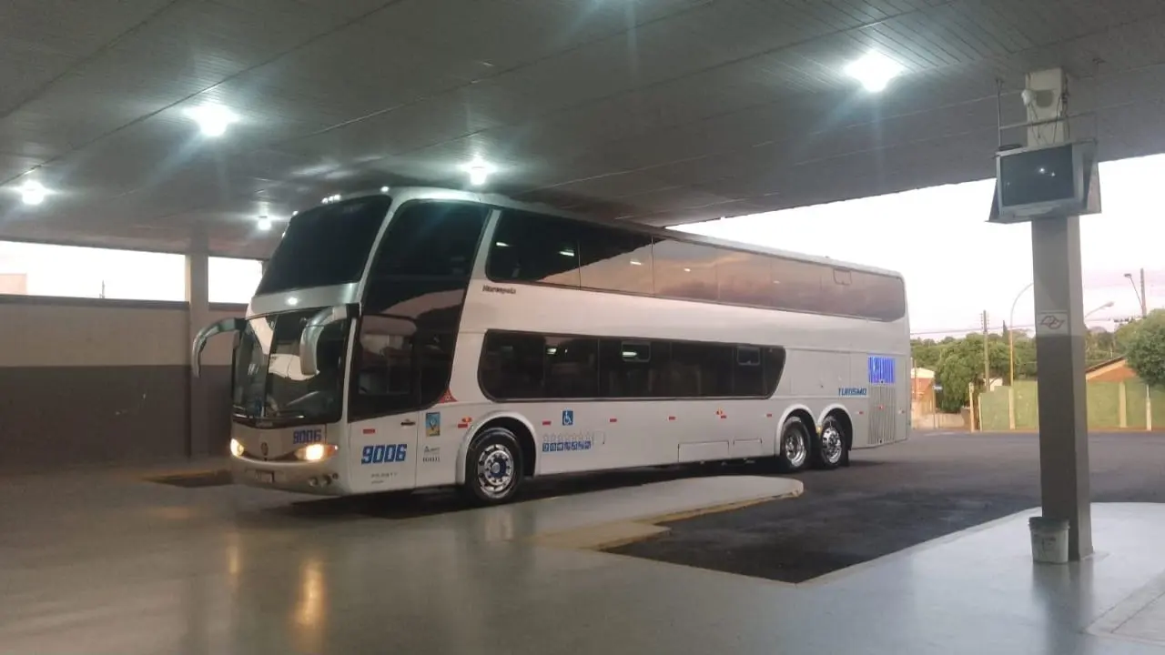 - Ônibus com 48 poltronas semi leito.